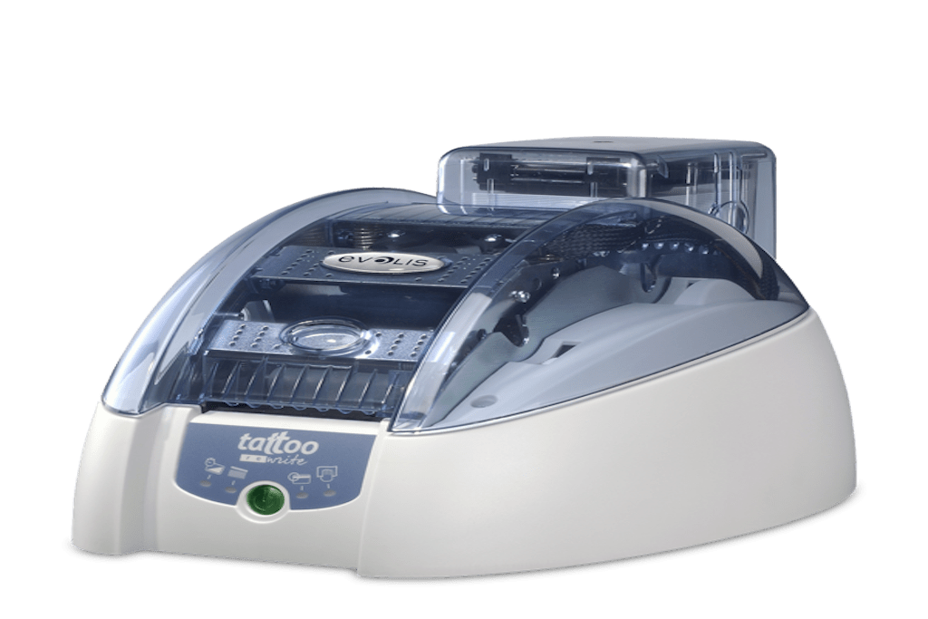 Térmica directa en monocromática (negro o azul) solamente por un solo lado de la tarjeta, sin cinta de impresión.